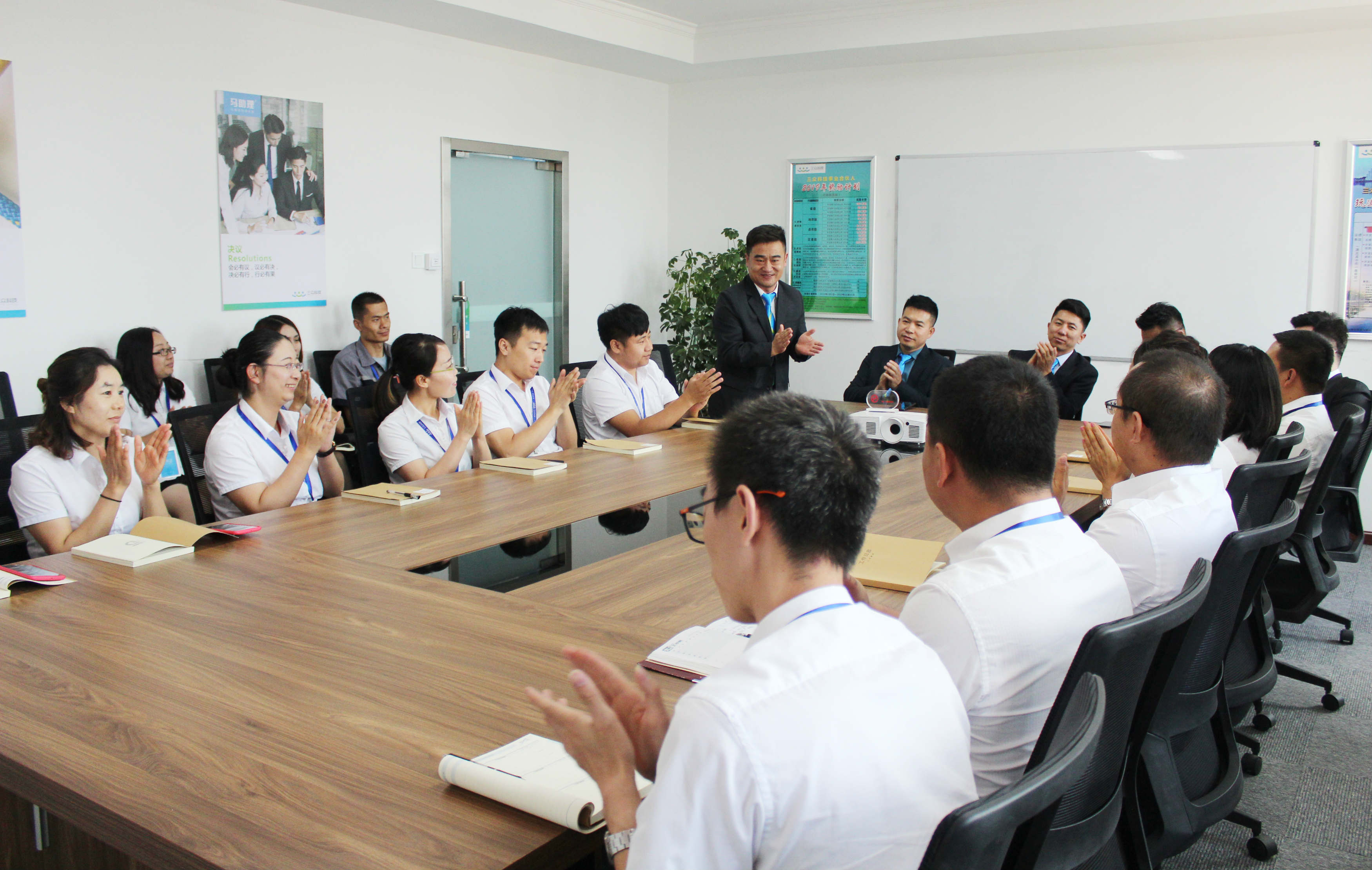 內蒙古三眾科技有限公司于2019年7月11日在公司召開歡迎新股東的會議。會議由公司副總經理孫凱主持,三眾科技全體員工參與會議。