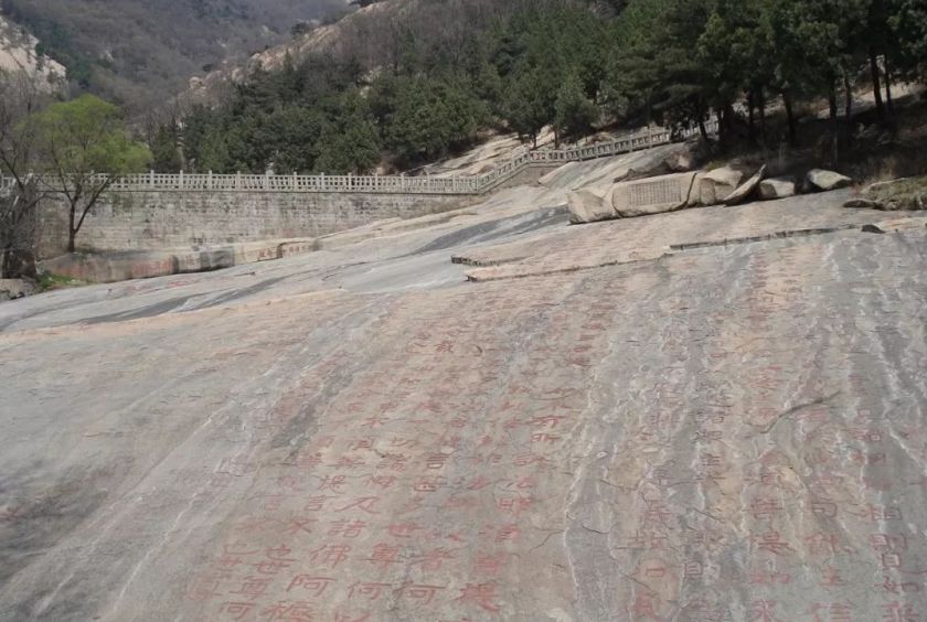泰山因其高,被古人視為“直通帝座”的天堂,成為百姓崇拜,帝王告祭的神山。歷代有識之士,文人墨客從更高精神文化層次,把泰山視為“國家柱石”、“民族精神”的象征,是一座蘊藏美質(zhì)、激發(fā)靈感、觸動愛國情思的名山。他們留下大量詩文和1000多處摩崖石刻。經(jīng)石峪的《金剛經(jīng)》石刻,聞名外。