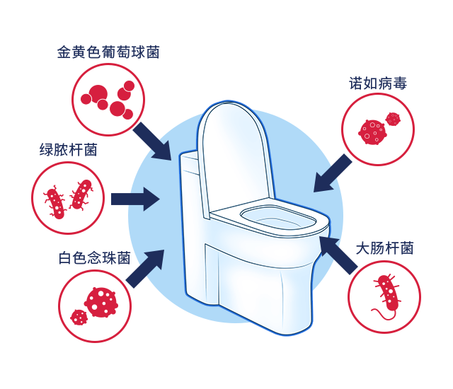 研究表明:現(xiàn)今已從廁所內(nèi)上提取出多種對人體有害的菌株,包括抗生素耐藥性金黃色葡萄球菌、諾如病毒、流感病毒、大腸桿菌、綠膿桿菌和白色念珠菌等。而且這些細菌和病毒有的存活長達數(shù)日。
