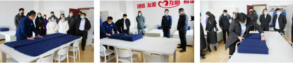 體驗完消防設備后,大家先后對黨員培訓室、體能訓練室、多功能影院等進行了參觀。重點是我們還到班組寢室,體驗了“豆腐塊”工程!內務的好壞反映著隊伍的精神風貌,大家都被消防員疊的“豆腐塊”驚呆了,還上手操作體驗了一下,真的是不容易!救援大隊一中隊良好的生活環境、規范的硬件設施、嚴格的制度管理,給大家留下了深刻的印象,大家不停拍照記錄,將良好的制度措施和經驗做法一一記錄下來。