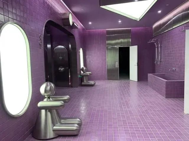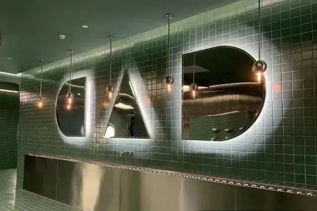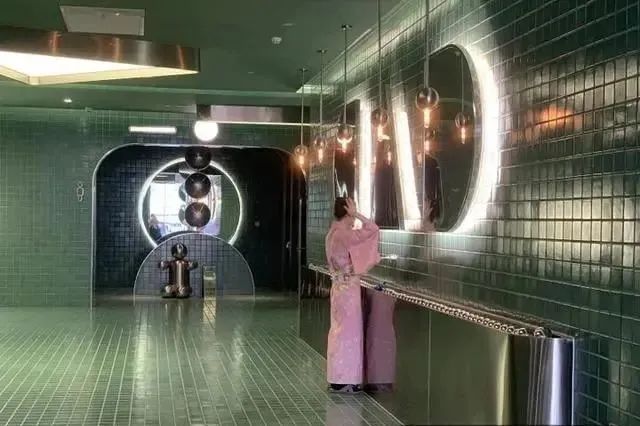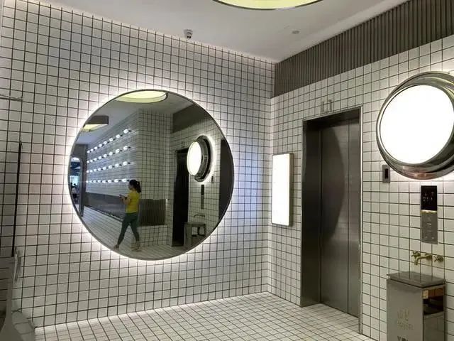 這里不銹鋼、發(fā)光鏡子元素應用得很多,連廁所的門上都有一個不銹剛圓球裝飾。難怪會讓那么多人慕名打卡。