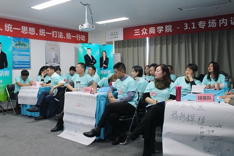 從思想碰撞中凝煉市場實踐智慧。三眾總經理趙云和副總經理孫凱分別從定位與布局、戰略與夢想兩大方面進行了專題分享,既有宏觀的市場趨勢分析、事業前景規劃,又有微觀的運營心法傳授、個人心得分享。授課之余,培訓會組織了小組討論、團隊PK,個別事業合伙人還分享了自己的市場經驗。結合學習內容,深入交流討論,落實市場實踐,凝聚市場智慧和力量。