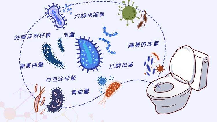 另外,大多數人上完廁所會習慣性地不蓋馬桶蓋,沖水的一瞬間也會將病菌有害菌釋放到空氣中,這些病菌有害菌會飄落附著到衛生間內的墻壁、天花板、毛巾、牙刷、漱口杯等物品上,日積月累會對人體的健康造成極大的威脅。